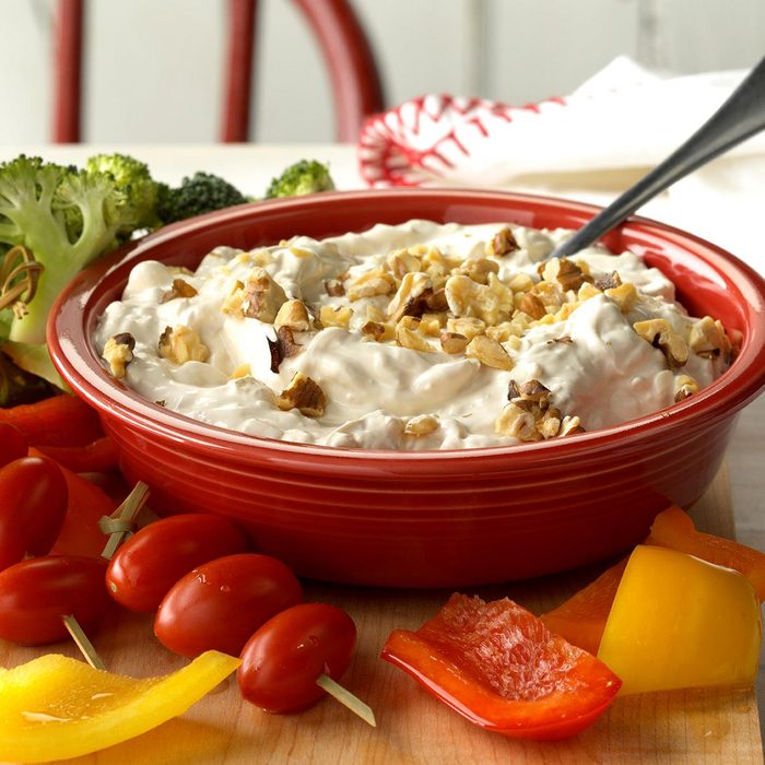 I decided to tweak the onion soup dip you see at every gathering, and everyone seems to be glad I did. Serve with crisp, raw vegetables or potato chips, and you’re set. —Vicki Desy, Tucson, Arizona
