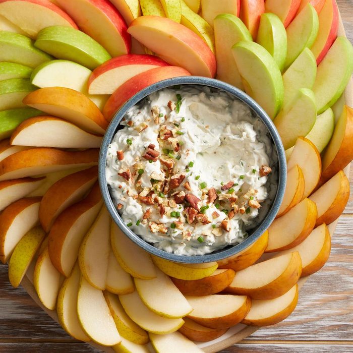 I have a large family, work full time, and coach soccer and football, so I appreciate recipes that are easy to assemble. This rich, creamy dip is a fun appetizer to whip up for any gathering. —Teri Schloessmann, Tulsa, Oklahoma