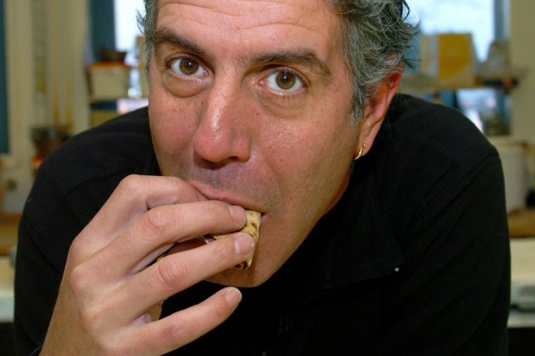 “Good food and good eating are about risk,” Bourdain wrote in his bestseller Kitchen Confidential: Adventures in the Culinary Underbelly. Through his TV travel adventures, the chef has eaten everything from a beating cobra heart to a raw seal eyeball, which he claimed were similar to an oyster and “not bad,” respectively. For viewers at home, the take-home message is: You won’t know if you don’t try. While raw organs aren’t everyone’s cup of tea, Bourdain encourages fans to open their minds to new foodie experiences—but you can always start with switching up the cheese on your turkey sandwich.
