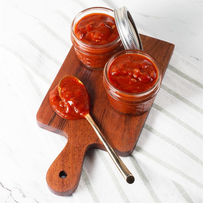 Packed alongside cheese and crackers, this homemade barbecue sauce is a delightful savory gift option. —Darla Andrews, Lewisville, Texas