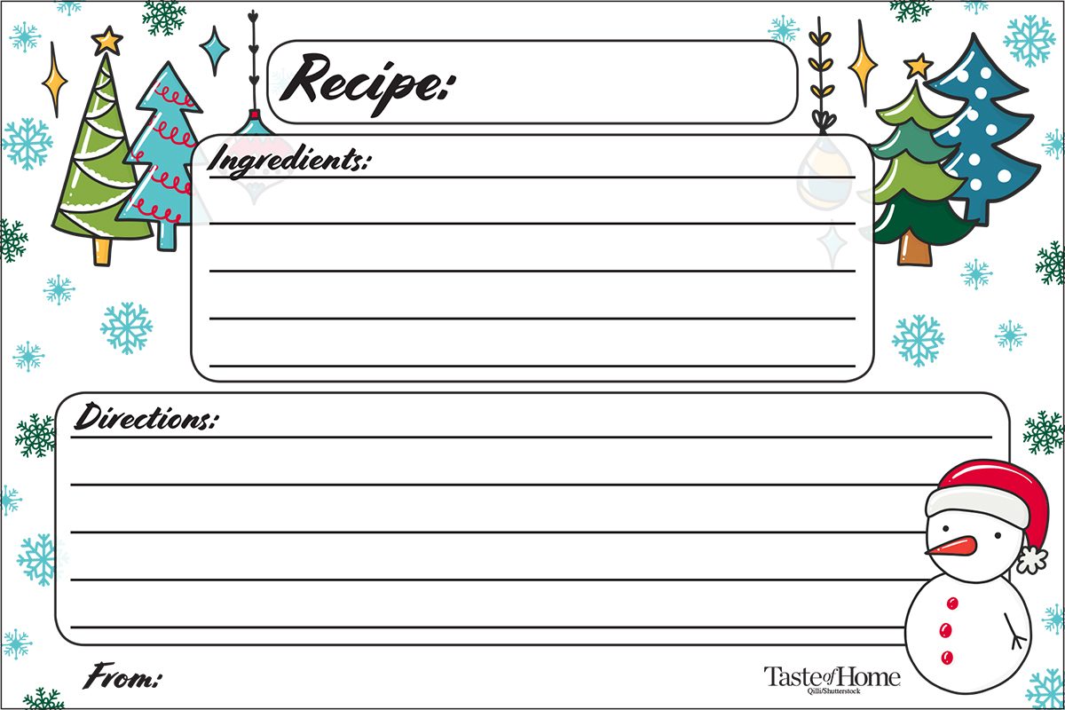 Write down your coziest casseroles, warmest soups and meatiest chilies on these wintry recipe cards. Pull them out on a cold winter’s day when all you want to do is snuggle up with a good book and a bowl of something warm to eat.