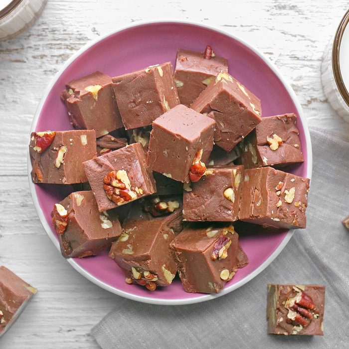 The secret weapon ingredient in this coffee-flavored fudge is cinnamon, which isn’t overpowering at all. Instead, it imparts a subtle flavor to the dense, pecan-packed fudge. Want more of a coffee kick? Add espresso granules or coffee extract.