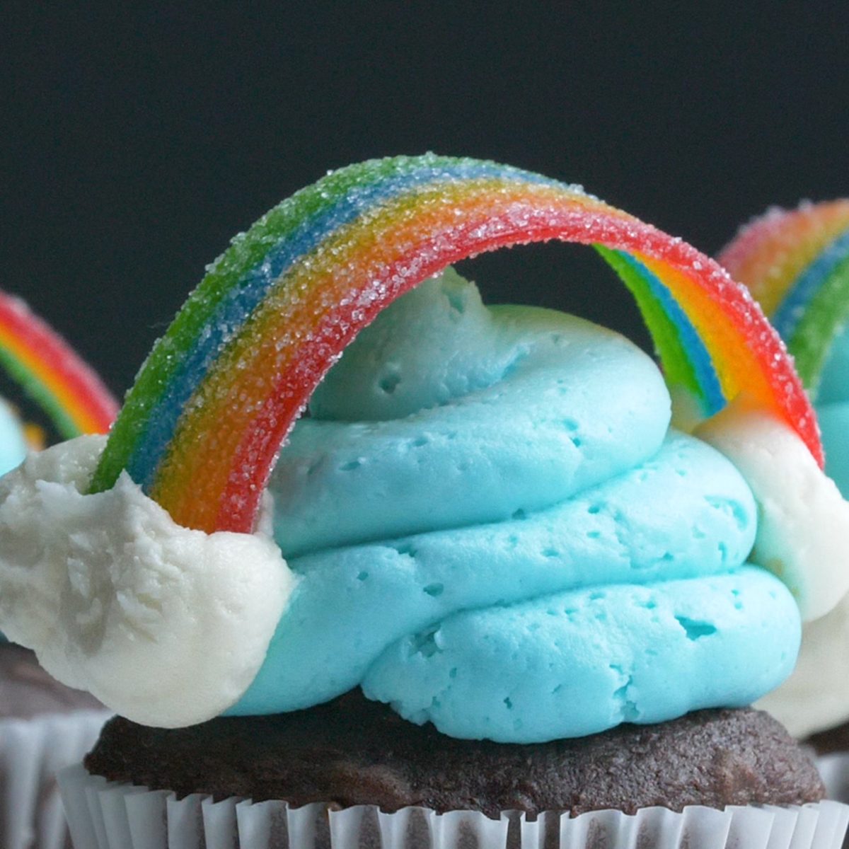 With some blue frosting, white frosting and a strip of Airheads Xtremes, you can top your cupcake with a sweet rainbow scene. Keep your head in the clouds with more rainbow-inspired recipes.