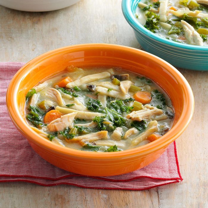 Chicken noodle soup brings back memories of childhood. This revamped version with a healthy twist is a favorite at my house, especially after we’ve been working outside on a cool day. It takes the chill off.—Cynthia LaFourcade, Salmon, Idaho