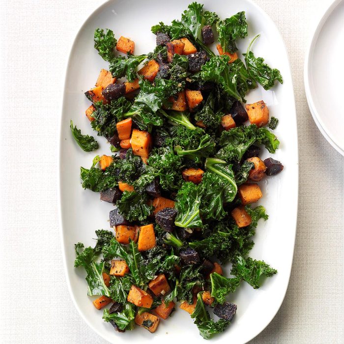 From the Recipe Creator: To entice my family to eat outside their comfort zone, I use lots of color. This happy hash combines sweet potato, carrots, purple potato and kale. —Courtney Stultz, Weir, Kansas