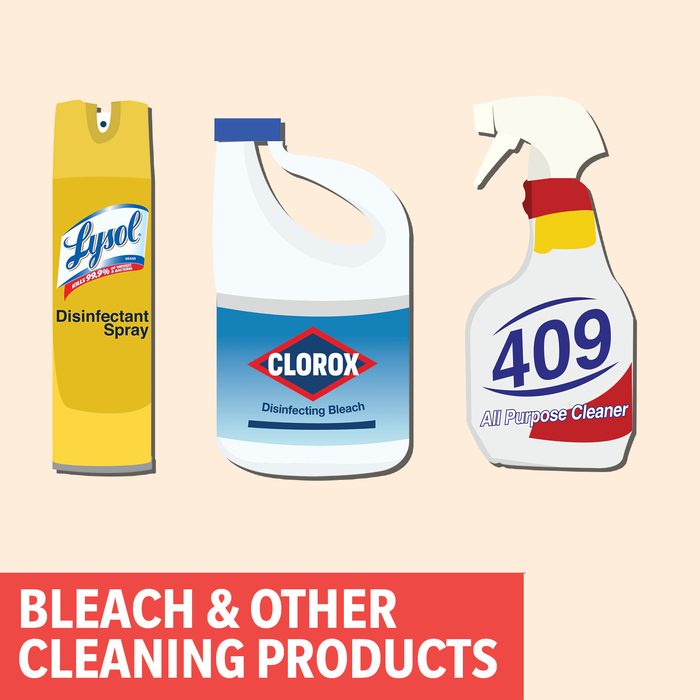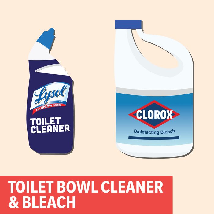 When you’re disinfecting with Lysol, don’t mix it with bleach. The bleach oxidizes the 2-benzyl-4-chlorophenol that is in Lysol, resulting in various irritating and toxic compounds. Plus, Lysol kills 99.9% of viruses and bacteria on most surfaces, so there’s no need to add bleach.