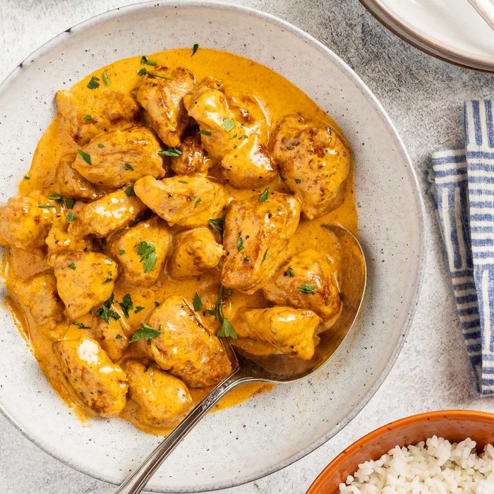 Tarragon is a criminally underrated spice that shines in this easy chicken dinner. Serve with bread to dip in the dreamy, creamy sauce.
