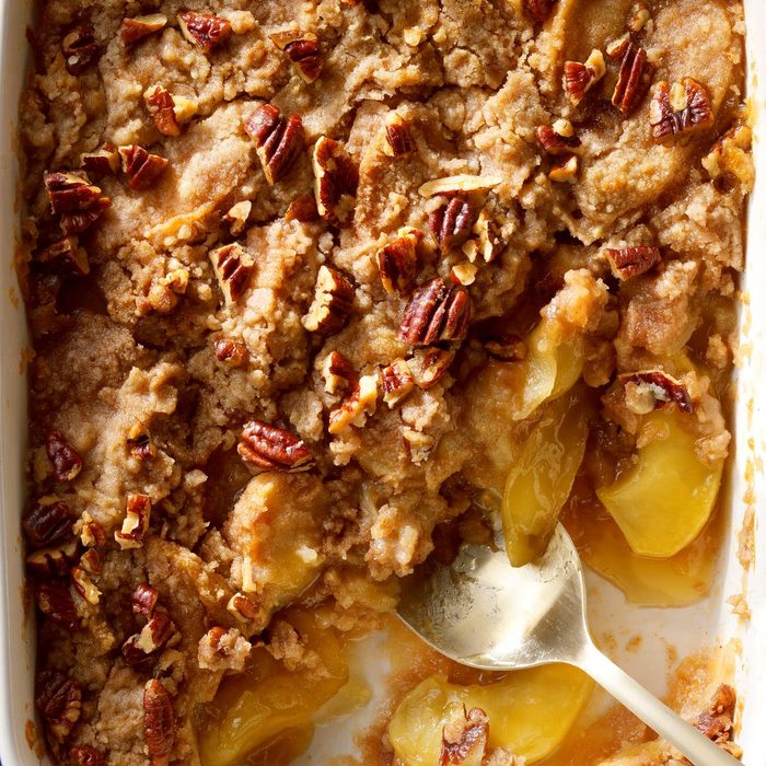I saw this recipe on a cooking show and came up with my own version. When the comforting aroma of this homey dessert drifts through the house, it’s hard not to take a quick peek inside the slow cooker —Sherri Melotik, Oak Creek, Wisconsin
