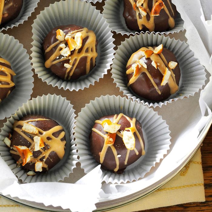 Sweet chocolate, creamy peanut butter and salty pretzels create a to-die-for truffle. It’s a little bite of decadence and a special indulgence for the holiday season.—Ashley Wisniewski, Champaign, Illinois