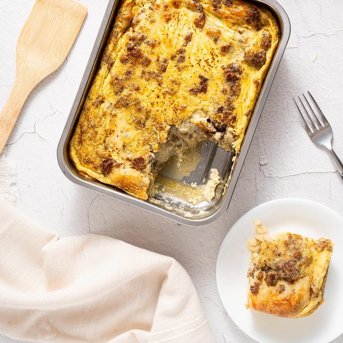 I made this tasty sausage and crescent roll breakfast casserole for a baby shower. It saved the day: Preparing it ahead gave me more time to finish decorating for the party. —Melody Craft, Conroe, Texas