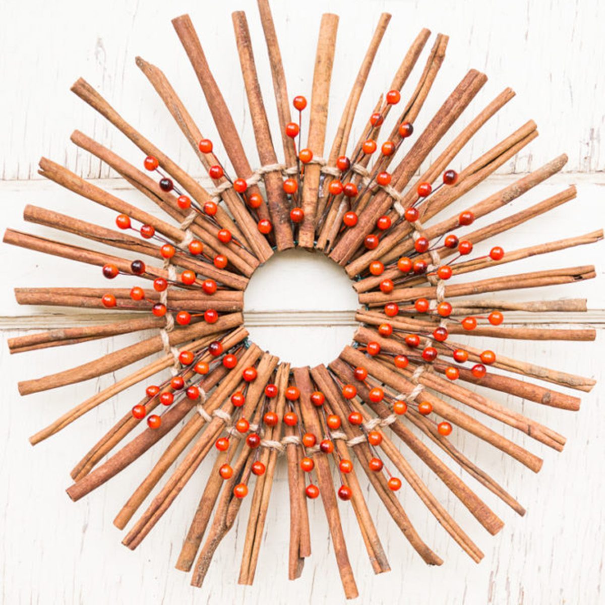 We love fall crafts that are more than just crafts. This cinnamon stick wreath is obviously charming but it also gives your home that fall scent of cinnamon—yum! To make, all you’ll need is a wire wreath frame, whole cinnamon sticks, twine and some decorative berries. Assembling is easy. Just use hot glue to affix the cinnamon sticks to the frame. Then weave in twine and berries until you get the look you love. Find the full tutorial at Crafts Unleashed. Want more holiday scents at home? Try these stovetop simmers.