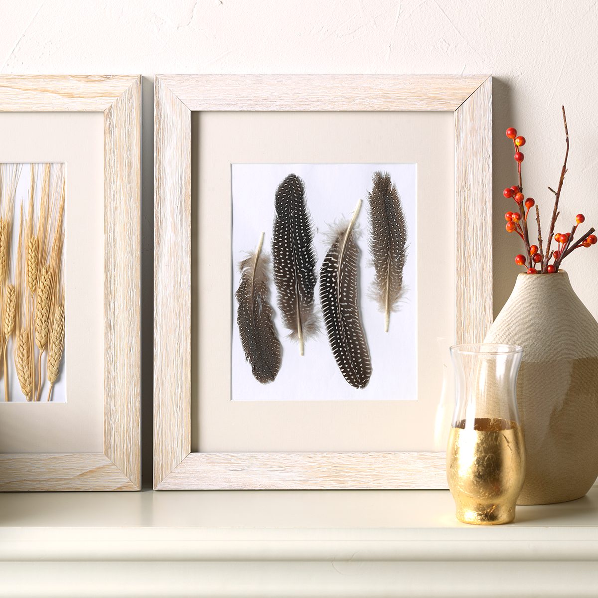 Give your home a nod to fall with framed feather art. This one is easy! Mount store-bought feathers (you can find them at stores like Michaels and Joann) with scrapbooking adhesive to a piece of cardstock and frame. The result is part-bohemian, part-rustic and just right for any home decor. We might even leave this one up all year!