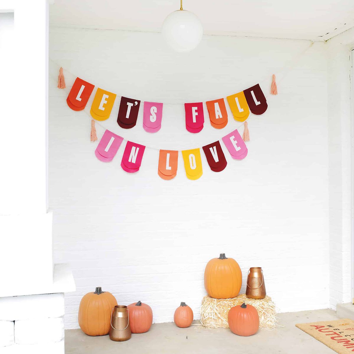If you love sweets as much as we do, you’ll have a table dedicated to dessert at your Thanksgiving gathering (because desserts deserve as much love as the turkey). Make a cute pumpkin pie garland to hang above it, because the more pumpkin pie we have around, the better. Get some orange and pie crust-colored felt, some twine, white chenille, hot glue and a pair of scissors and check out Less than Perfect Life of Bliss‘s post to learn how to make it. Here are some more pretty pumpkin decor ideas for this fall.