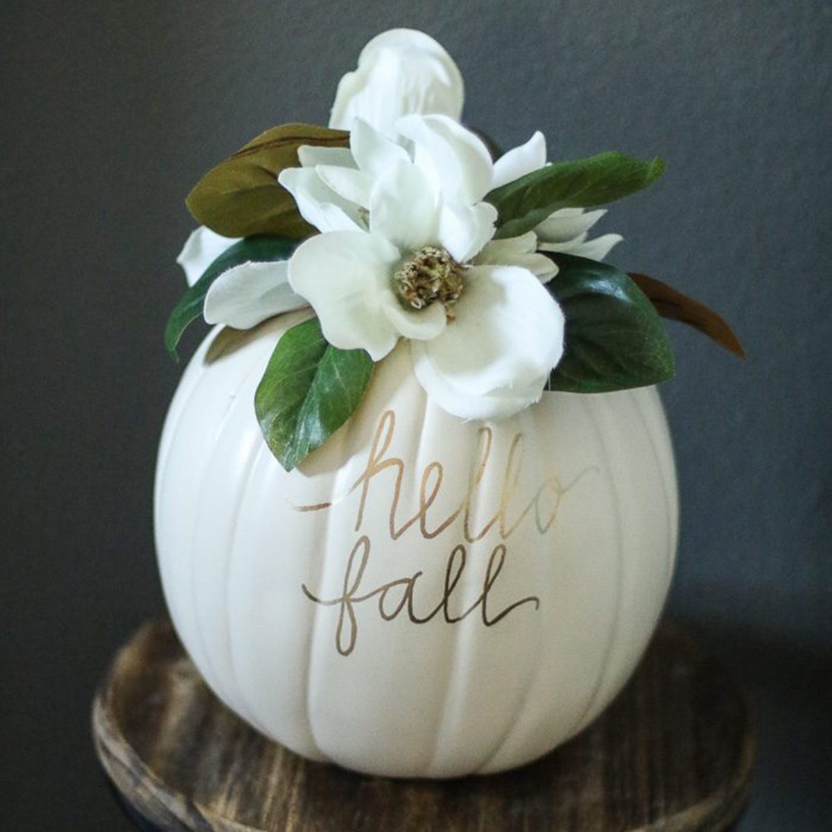 Need a 15-minute craft to complete your tabletop or entryway? Look no further! To make this adorable pumpkin centerpiece, you’ll need a faux pumpkin, a gold felt-tip marker and some silk flowers. To make, just cut a small opening in the top of your pumpkin with a craft knife. Then write the phrase of your choosing, be it “hello fall,” “give thanks” or just simply “welcome” on the pumpkin. Then fill the top with the silk flowers of your choosing. Get the step-by-step guide over at Lolly Jane.