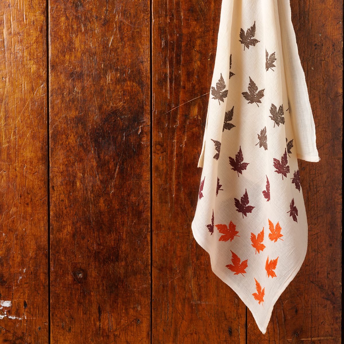 Want a fall craft you can use all season long? Try this tea towel. To make it, start with a clean tea towel or flour sack towel. You can find plain versions at your local craft store or buy a pack online (make spares to give to your pals!). Be sure to wash them first to remove any fabric coatings from the manufacturer. Then using a leaf-shaped stamp and fabric-safe paint, stamp the pattern right onto the towel. We love this falling leaves print, but feel free to use other fall shapes like pumpkins and acorns, too.