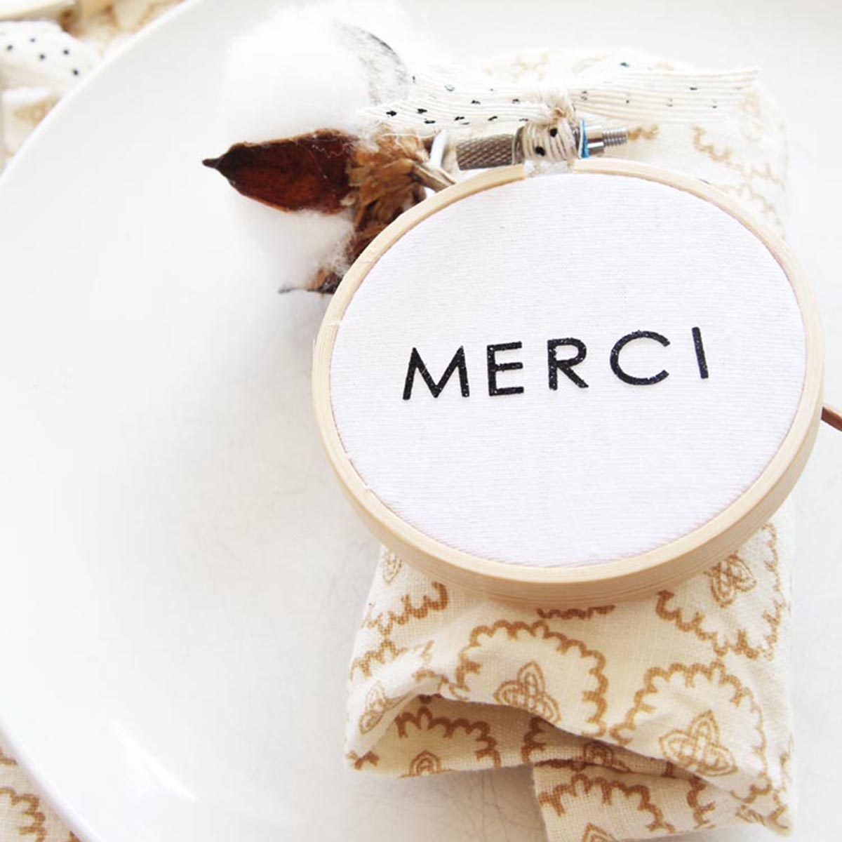 No stitching skills are required for this fall craft. Instead, you can whip up one of these (or a handful) in minutes. You’ll need an embroidery hoop—any size, though this one is three inches across and perfect as a placecard—fabric and some sticker letters. Stretch your fabric into the hoop’s frame and trim. Make sure the fabric is taut and then glue into place. Use the sticker letters to spell out different words for thanks, like merci, gracias and danke. You can make these larger, too, and hang them up for decor (and change them up for the seasons). Learn more at Homemade Ginger.
