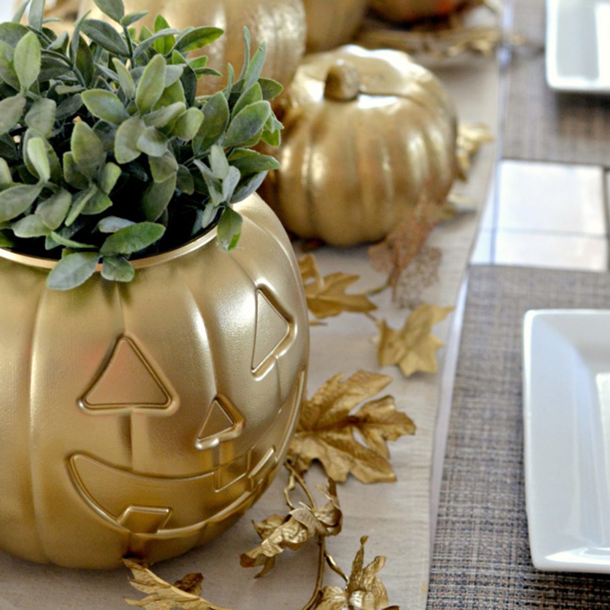 We can’t get enough of this plastic pumpkin upcycle. All you need for this one is a plastic trick-or-treat pumpkin and some gold spray paint. We’re sure you’ve got one of these pumpkin buckets at home, but if not, try the dollar store (it’s a great place for seasonal deals and craft supplies). All you have to do is spray paint the pumpkin any color of your choosing. Then fill up with flowers (real or fake), place it on your tabletop and wait for the compliments to roll in. You’ve got Hip2Save to thank for this one!