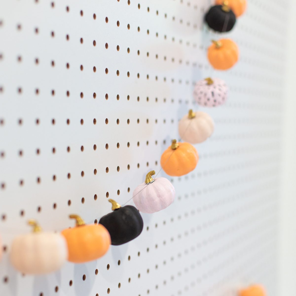 Isn’t everything cuter in miniature? These desserts certainly are and so is this pumpkin garland from Lovely Indeed. You can make this garland by stocking up on mini foam or plastic pumpkins. Then paint each a new color. This classic orange, black and white scheme is just right for Halloween but opt for metallics for a more autumnal feel or even wild colors to show off your personality. Once dry, tie each pumpkin on a long strand of thick thread or thin twine.