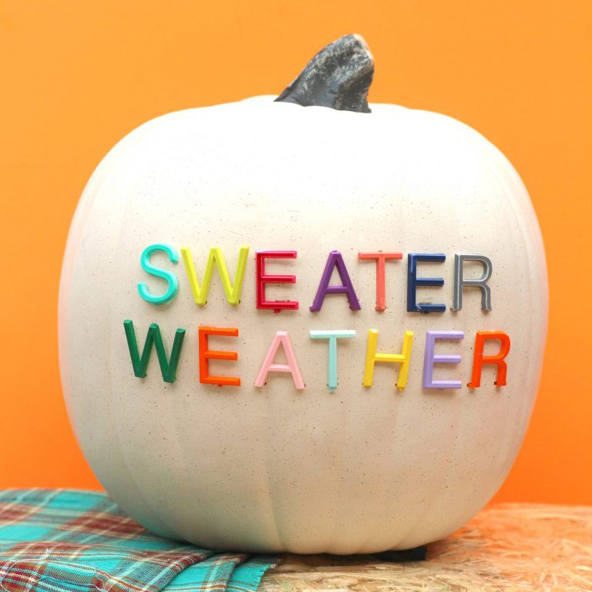 It’s the most wonderful time of the year! Let friends and fam where you’re at with an adorable letter board-inspired pumpkin. Just use your spare letters from a trendy felt letter board (you know the ones) and press them into a pumpkin—real or faux. Don’t have a letter board? You can sub in scrapbook stickers! Get the full scoop, plus how to color these letters, on A Girl and a Glue Gun.