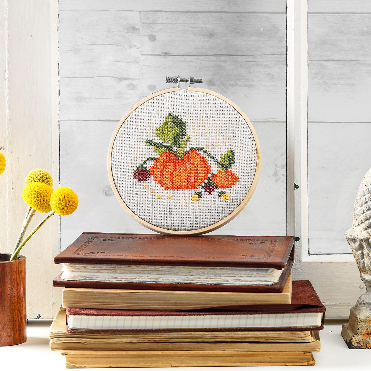 Slow stitching on a cozy afternoon more your crafting style? You’ll want to print out this adorable pumpkin cross stitch pattern then! With just a few skeins of floss, you’ll have an adorable print suitable for framing or displaying right in the embroidery hoop. This fall decorating DIY has us craving all kinds of pumpkin bread.