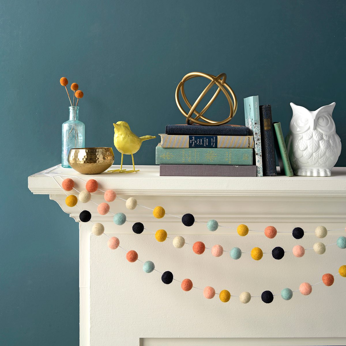 Want to feel snuggly all season long? You’re going to want to try one of our favorite autumn decor ideas: a woolen pompom garland. This one is so simple. Using a long needle and thick thread, string together wool balls to make a garland. You can find pompoms like these online or use standard pompoms from any craft store. String them across your mantle, headboard or just about anywhere for warm, fuzzy feelings from fall all the way through winter.