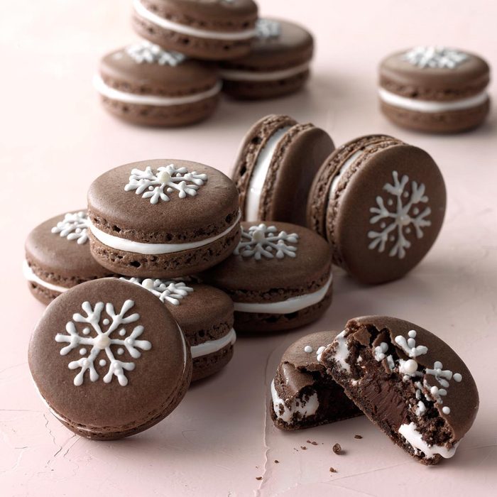 Even decorated simply—a sprinkle of sugar, a drizzle of icing—these stylish beauties are part of our creative Christmas cookies collection. They will be the showstoppers on any cookie tray. —Josh Rink, Photo Stylist Taste of Home. Find out why macarons are so expensive.