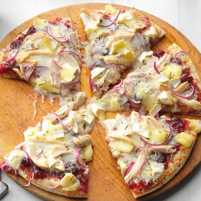 From the Recipe Creator: While traveling in New Zealand, my husband and I discovered turkey pizza. We came up with our own version for a creative way to use leftovers. —Kristin Stone, Little Elm, Texas
