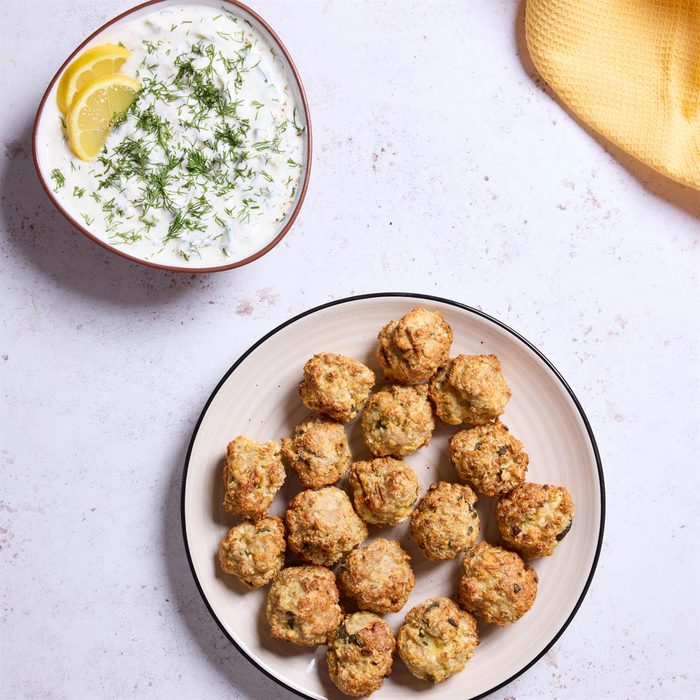 Indulge in Mediterranean flavors with these irresistible Greek chicken meatballs. The juicy, tender meatballs blend aromatic herbs like mint and basil with lean ground chicken, garlic and feta cheese. But the real star of the show is the homemade tzatziki sauce. —Melanie C. Tritten, Charlotte, North Carolina