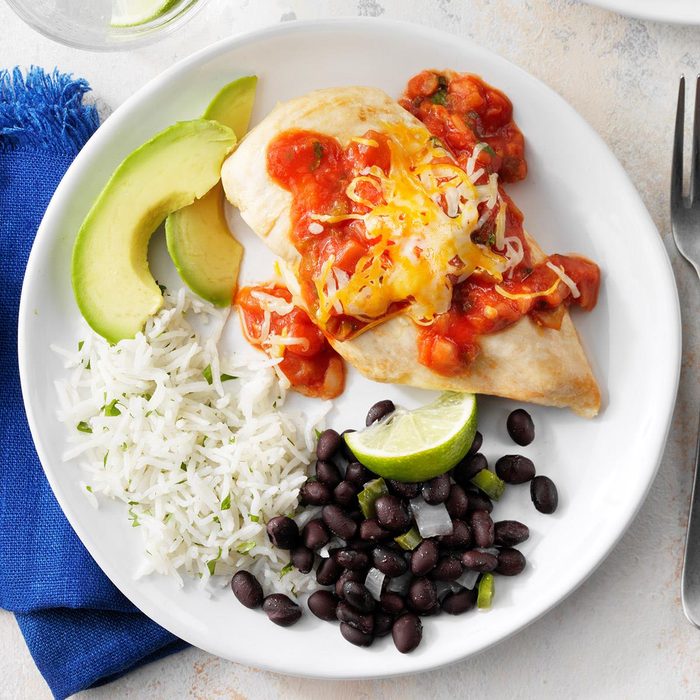 I developed this quick and easy recipe through trial and error. I used to garnish it with sour cream, too, but I eliminated it in order to lighten the recipe. My friends all love it when I cook these chimichangas, and they’re much healthier than deep-fried. —Rickey Madden, Clinton, South Carolina
