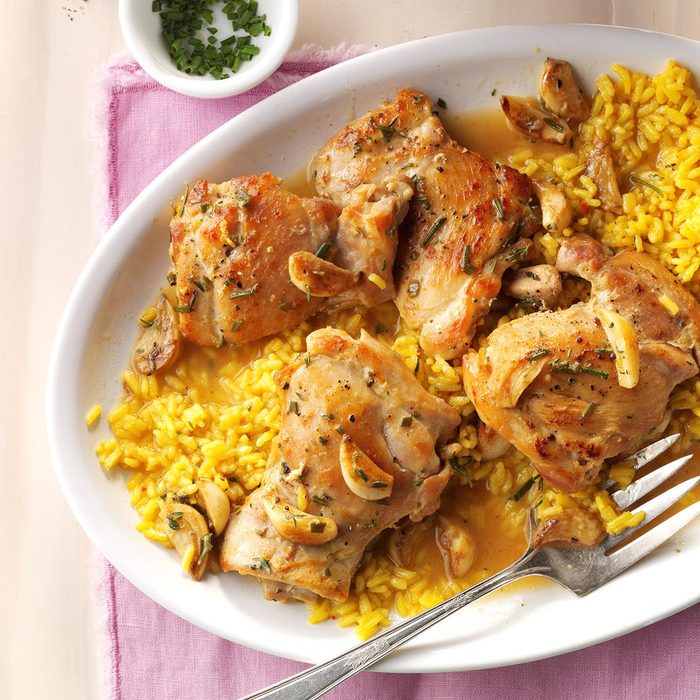 Pan-roasting garlic cloves turns them into rich, creamy deliciousness. This chicken is also fantastic with a loaf of crusty bread or mashed potatoes on the side. —Kathy Fleming, Lisle, Illinois