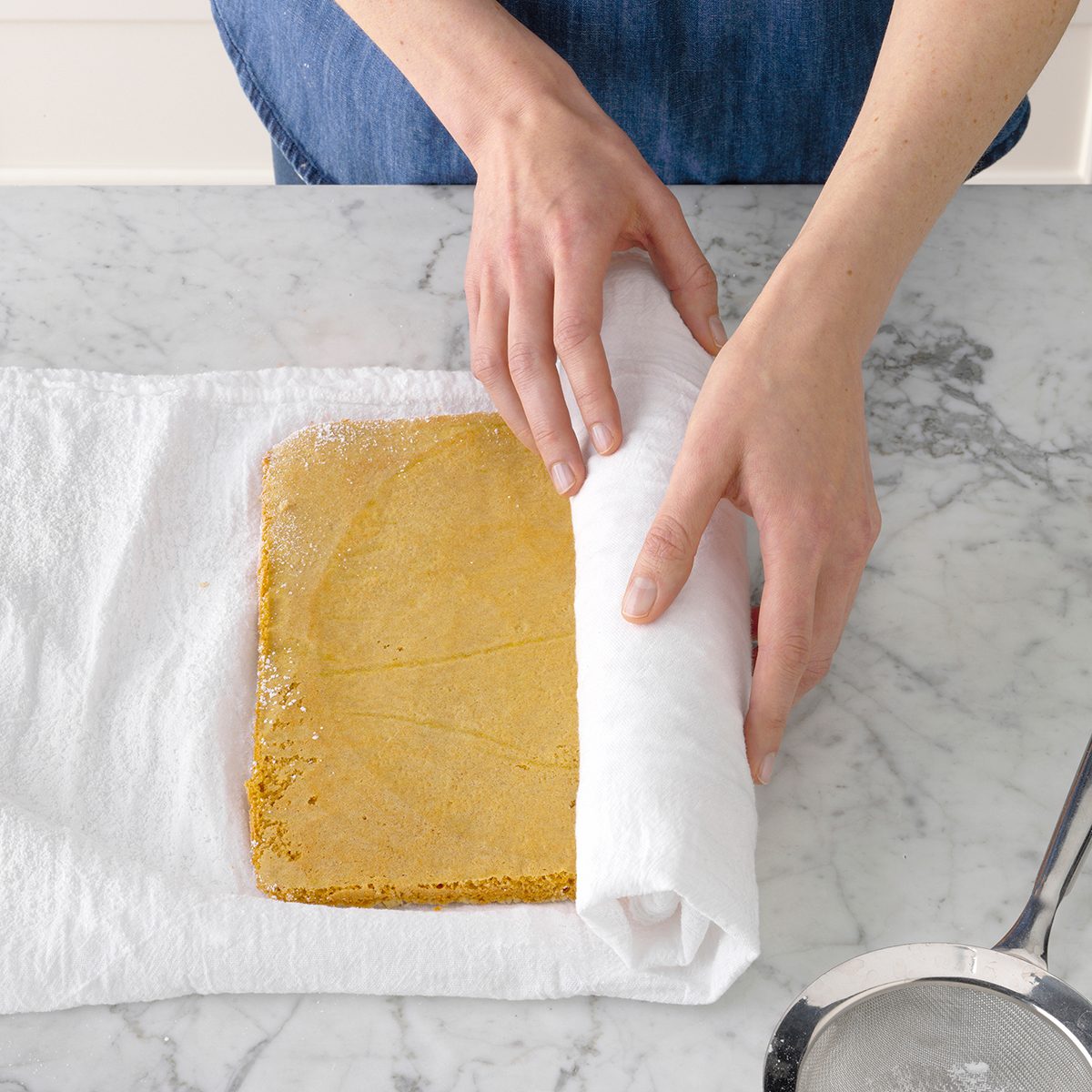 Keep your cake rolls from breaking by rolling them in a tea towel dusted with confectioners’ sugar. Rolling the cake while it’s still warm keeps it from breaking and helps train the sponge to curl the right way for when you fill it. Here’s our complete how-to.