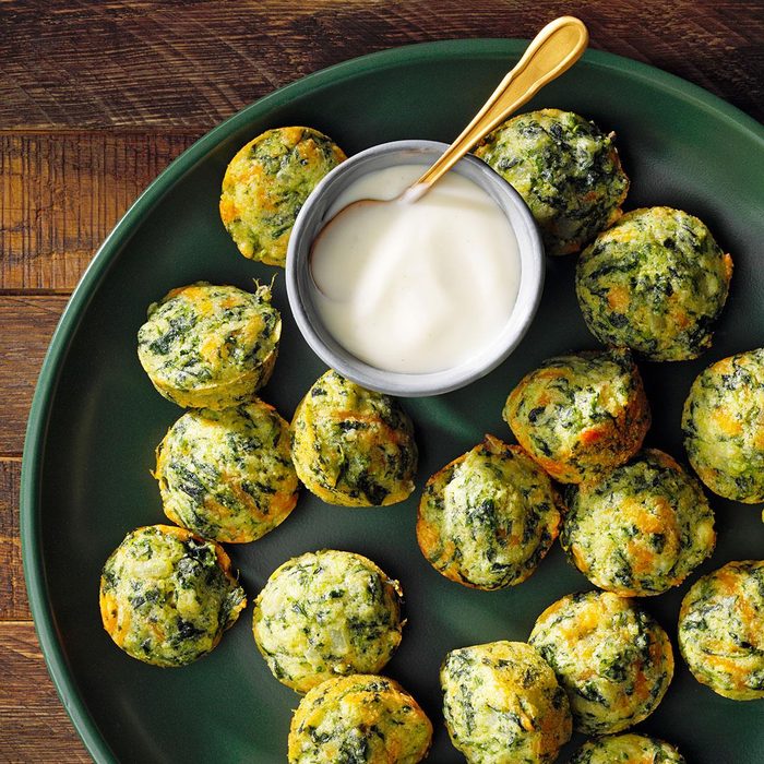 A coworker gave me this recipe thirty years ago. I made a few changes to suit my family’s tastes. These hot cheese and spinach puffs are tasty and always well-received! They are super convenient since you can make them in advance and bake them later. —Kristine Chayes, Smithtown, New York