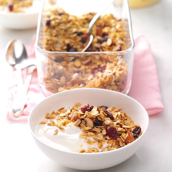 It’s so simple to put this granola together, and it really helps with breakfast on busy mornings. Change up the fruits to fit your preferences or the seasons. —Arisa Cupp, Warren, Oregon
