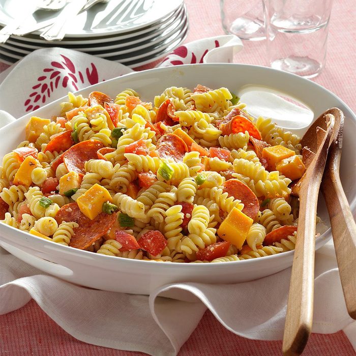 Everyone needs a perfect pasta salad that’s easy to make, especially on busy nights when your family wants a dish that’s fast, light and cool. This is just the thing. —Jill Donley, Warsaw, Indiana