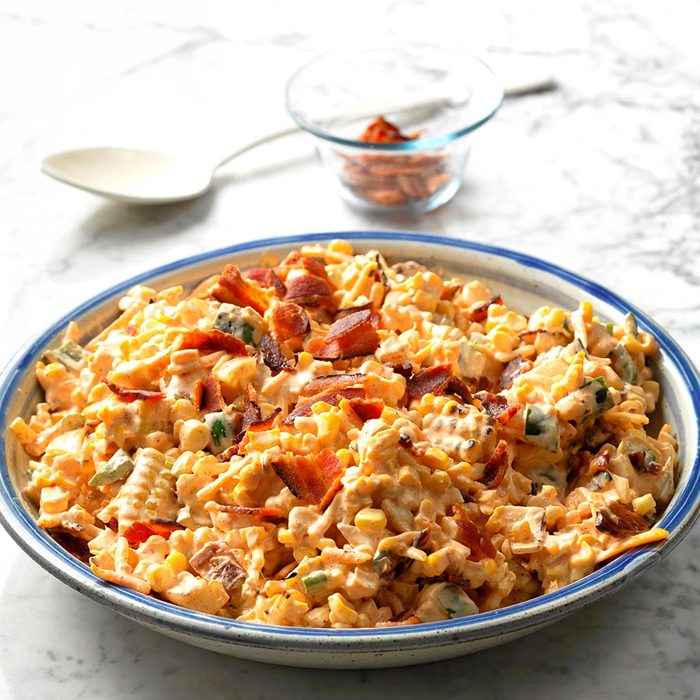 I created this recipe for a wedding I was catering, and it's a good thing I made buckets of it, because I couldn't stop eating it! This chilled creamy salad combines all the best flavors of jalapeno poppers with the delicate sweetness of fresh corn. —Amanda Miller, Hutchinson, Kansas