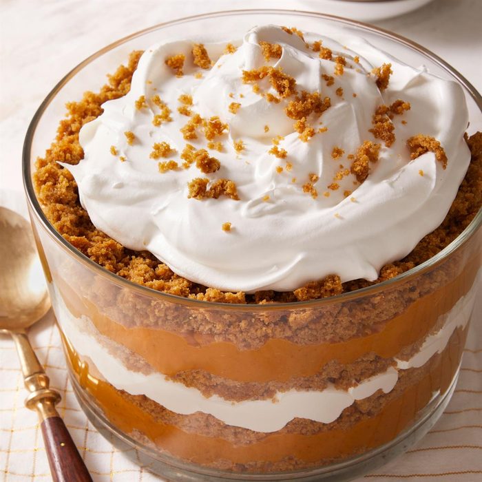 There's more to pumpkin than pie, as this impressive trifle proves. It looks so elegant with alternating layers of gingerbread cake and pumpkin/butterscotch pudding. Try making it ahead of time for a fuss-free dessert when you're planning to entertain guests. —Lyla Lehenbauer, New London, Missouri