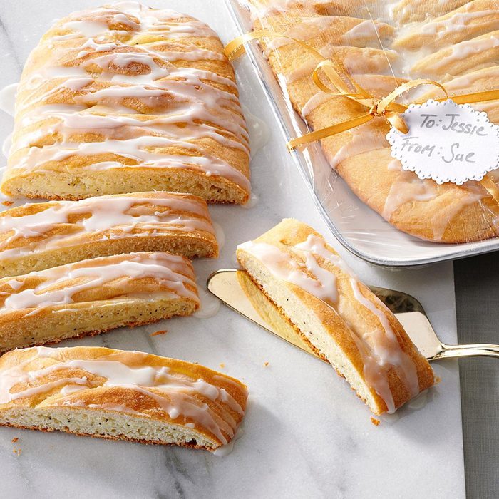 I think that as long as I’m in the kitchen baking I might as well make enough to share. This traditional recipe gives me three cheese-filled coffee cakes drizzled with a sweet vanilla icing. —Sheri Kratcha, Avoca, Wisconsin