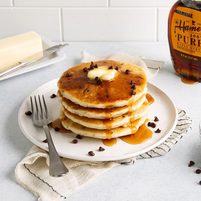 At our house, Saturday morning always means pancakes for breakfast. I make the menu special by servings up stacks of these fluffy buttermilk treats studded with mini chips. —Julianne Johnson, Grove City, Minnesota