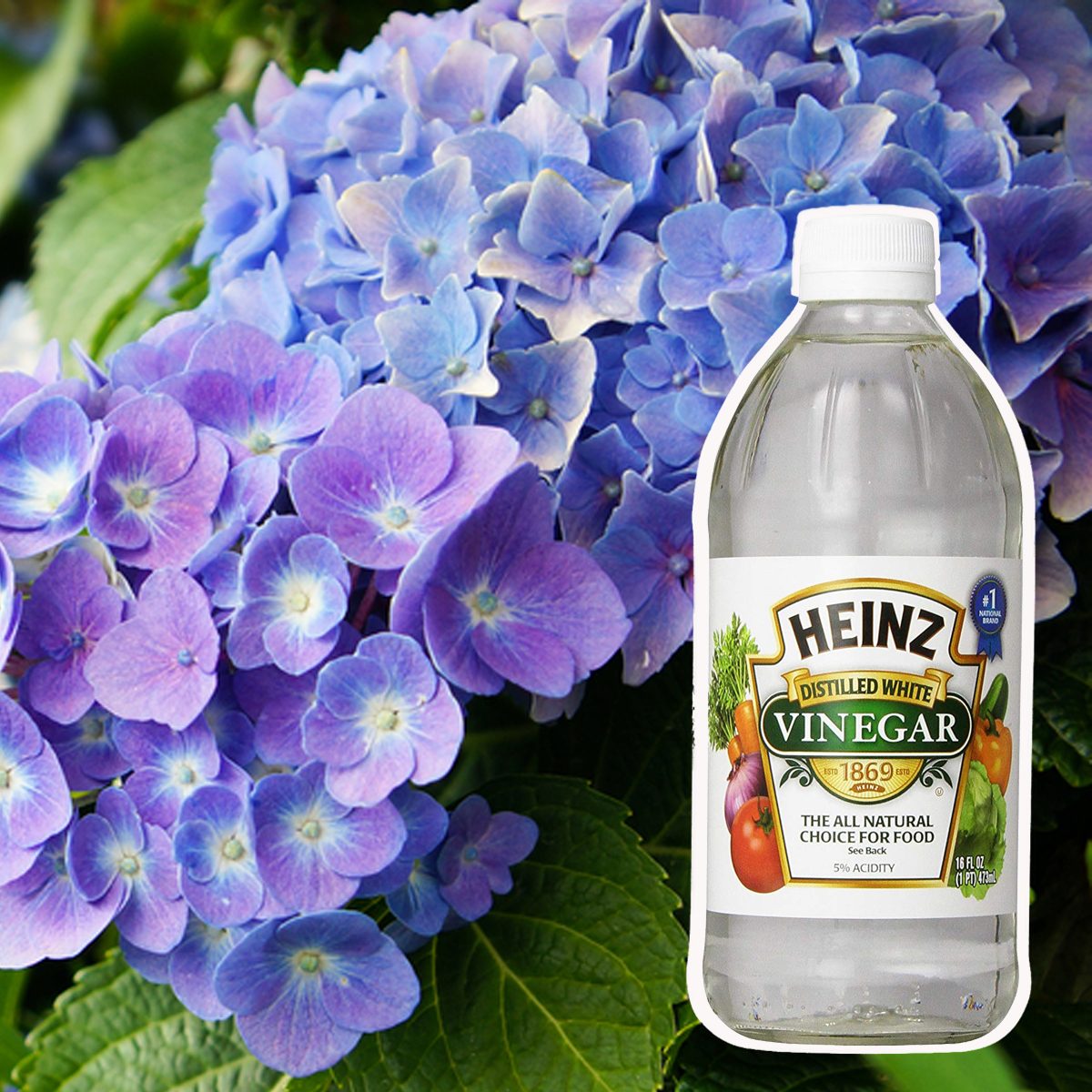 Unlike baking soda, distilled white vinegar is acidic, and acidic soil is the secret to turning your pink hydrangeas blue. (Note: This doesn’t work on white hydrangeas.) Vinegar also enhances the soil of acid-loving plants like azaleas, rhododendrons and gardenias. Use a cup of white distilled vinegar to a gallon of tap water. Do you know the difference between apple cider vinegar and white vinegar?