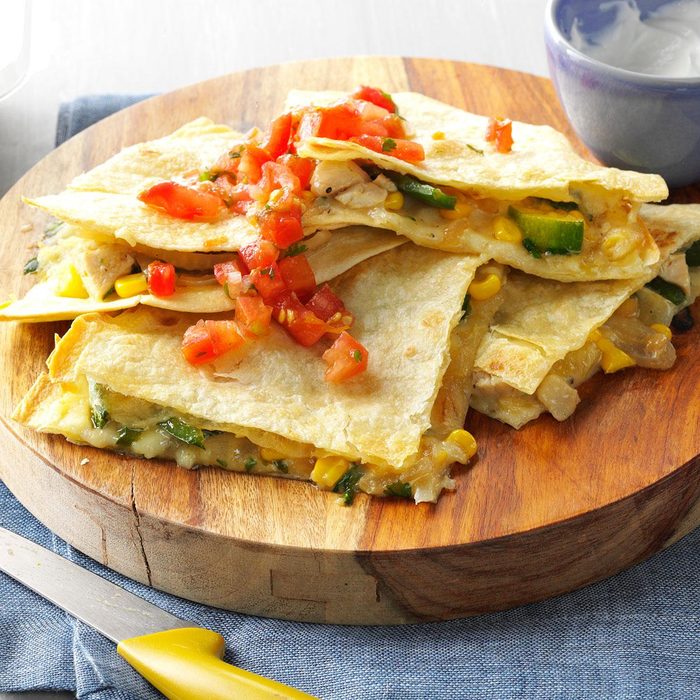 Here's a quick and easy summer lunch that makes great use of garden-grown tomatoes. Feel free to make your quesadillas heartier by adding grilled chicken. —Amy Mongiovi, Lititz, Pennsylvania