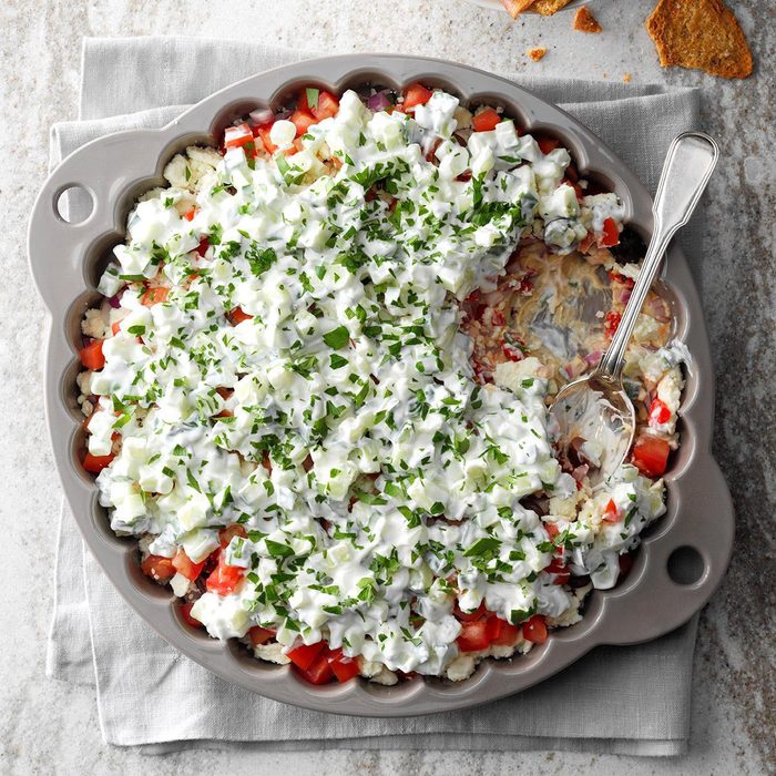 Layered Mediterranean Dip with Pita Chips