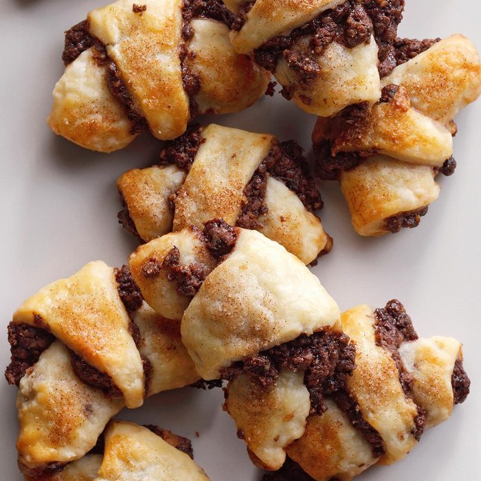 Many bakeries make chocolate rugelach, but they taste so much better when they are homemade. Traditionally, they are filled with a cinnamon nut mixture, but everything is better with chocolate! —Fern Holody, Lavallette, New Jersey