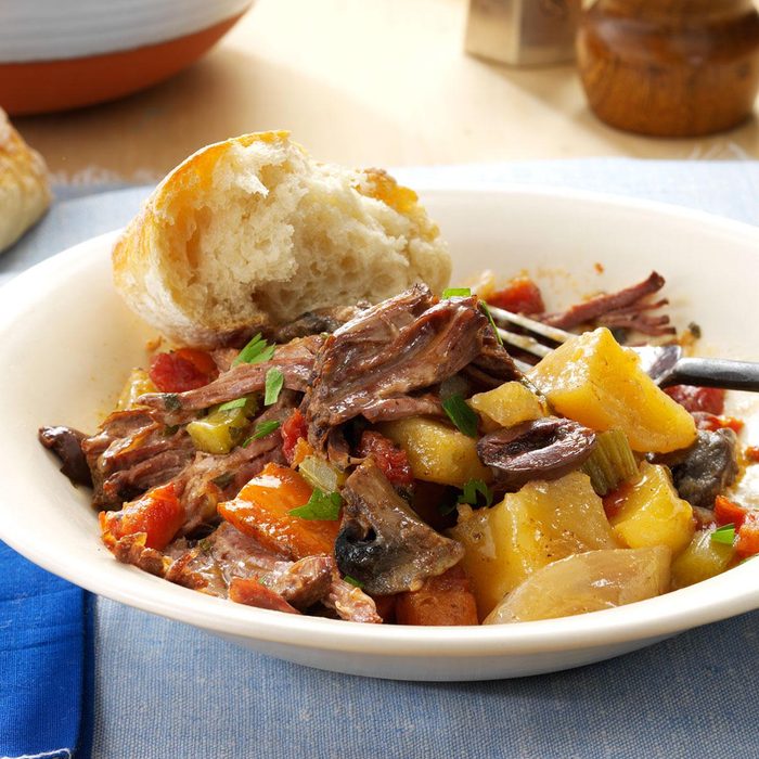 Because I work full time, this slow cooker pot roast is my go-to when I want a hearty, home cooked meal. It’s a comfort to walk in and smell this roast simmering. —Gina Jackson, Ogdensburg, New York
