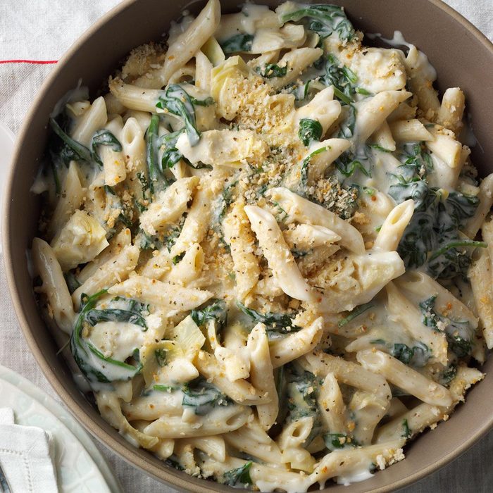 Pasta loaded with artichokes and creamy cheese is everything a Sunday dinner should be: rich, tasty and memorable. Add cooked chicken, shrimp or crab if you like. —Nancy Beckman, Helena, Montana