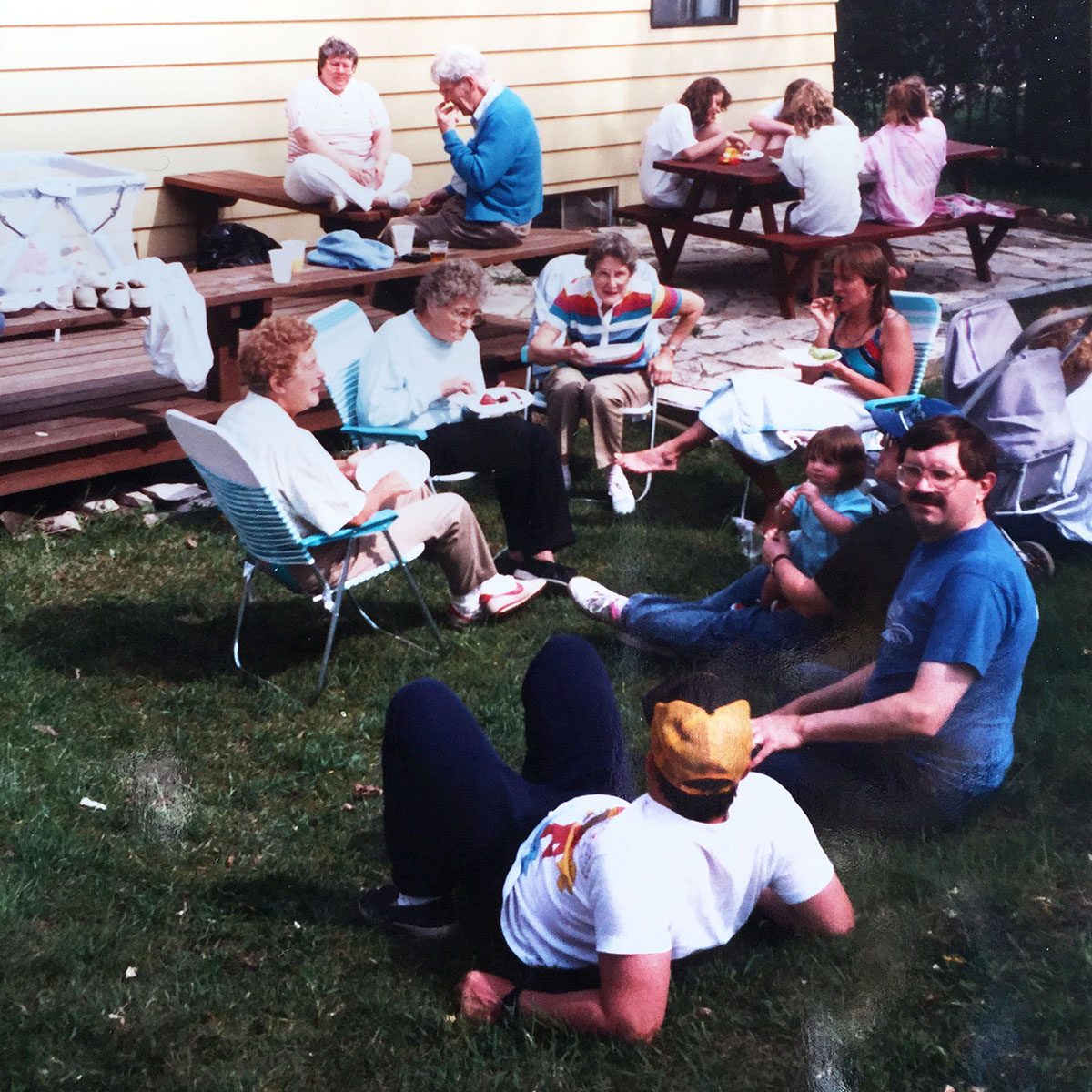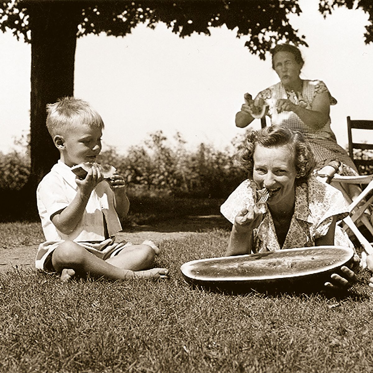 Summertime means packing up a basket and heading out to the park to picnic, much like this family back in the ’40s.