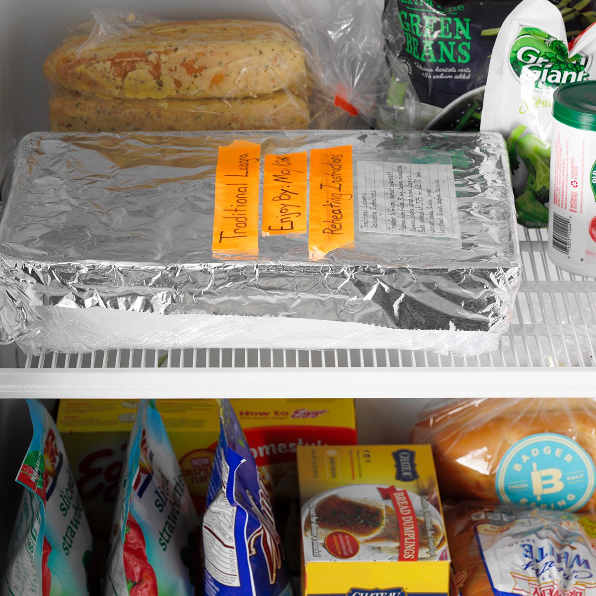 “I like to make and freeze dishes that can be prepared ahead of time. I make dressing in advance, place it in a zip-top bag and freeze. I write the instructions on the outside of the bag, so I know what steps to take before I put the thawed mixture in the oven.”