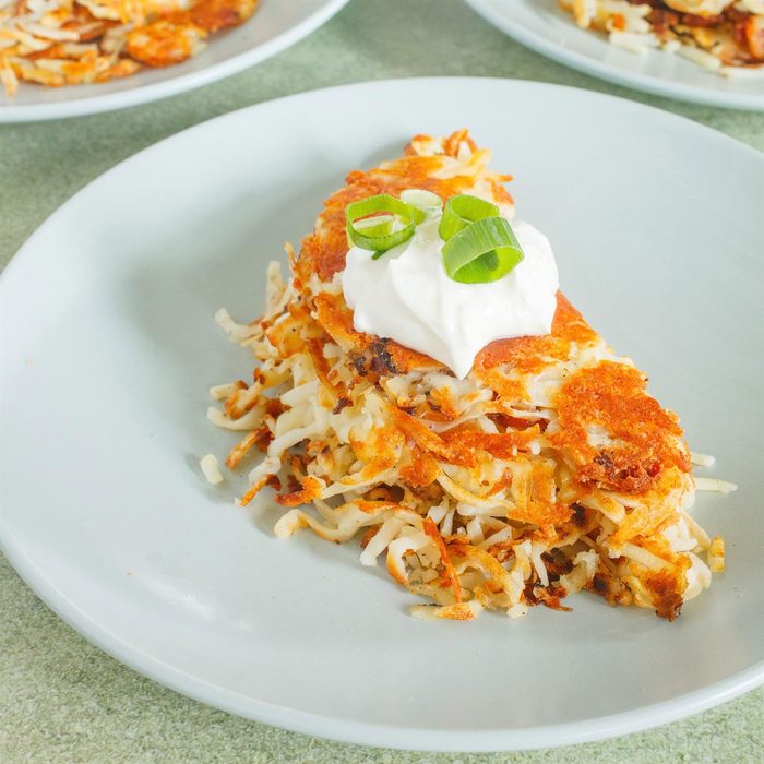 Ever since we met, my husband has made me hash browns with bacon, pepper jack and sour cream. We share it when we have guests, too. —Annie Ciszak Pazar, Anchorage, Alaska