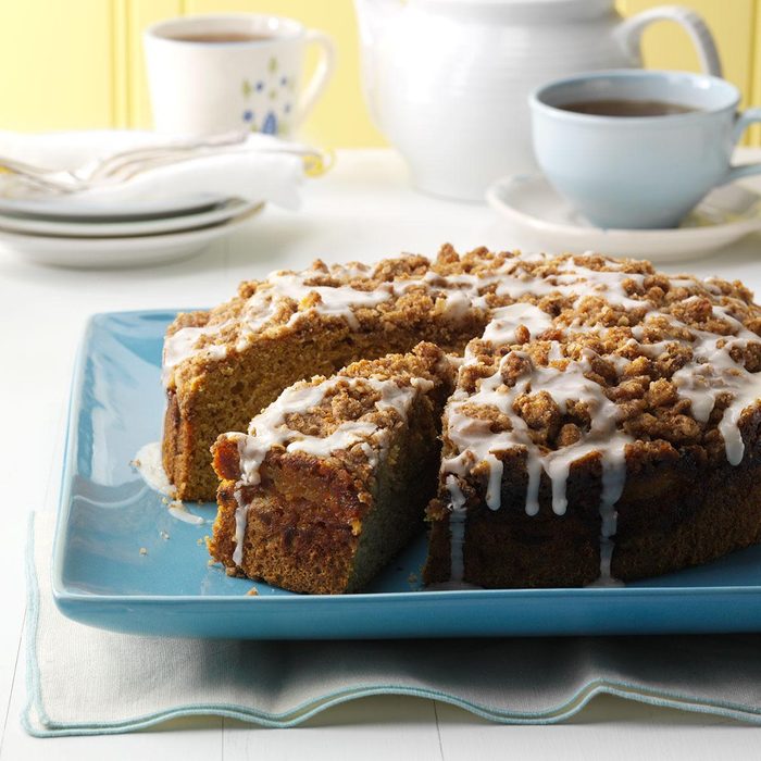 My father grows a large buttercup squash patch, so each fall, I get an ample amount of his harvest. I make this treat to share with my co-workers. They rave about the moist cake, the crunchy streusel and the applesauce between the layers. —Mary Jones, Cumberland, Maine