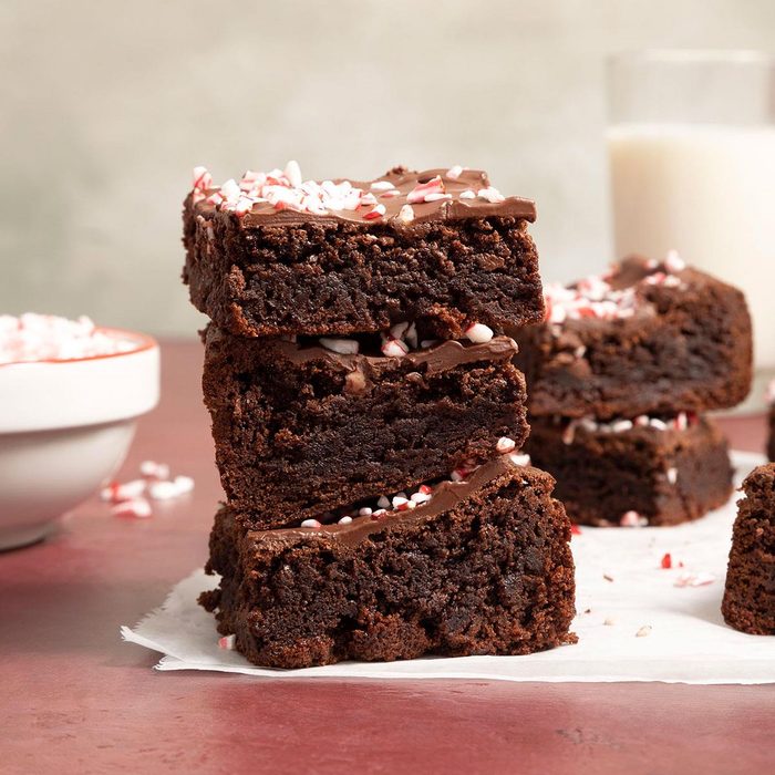 One of the best things about this recipe is that theses mint chocolate brownies get moister if you leave them in the refrigerator for a day or two. The problem at our house is no one can leave them alone for that long! —Helen Baines, Elkton, Maryland