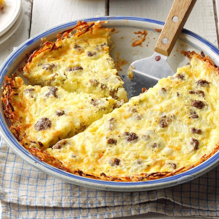 This hearty dish gets the day off to a good start with its comforting and cozy flavors of shredded potatoes and crumbled taco meat.